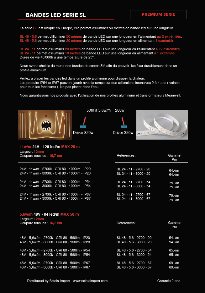 MAXIMUM 20 mètres à la suite avec alimentation au 2 extrémités.